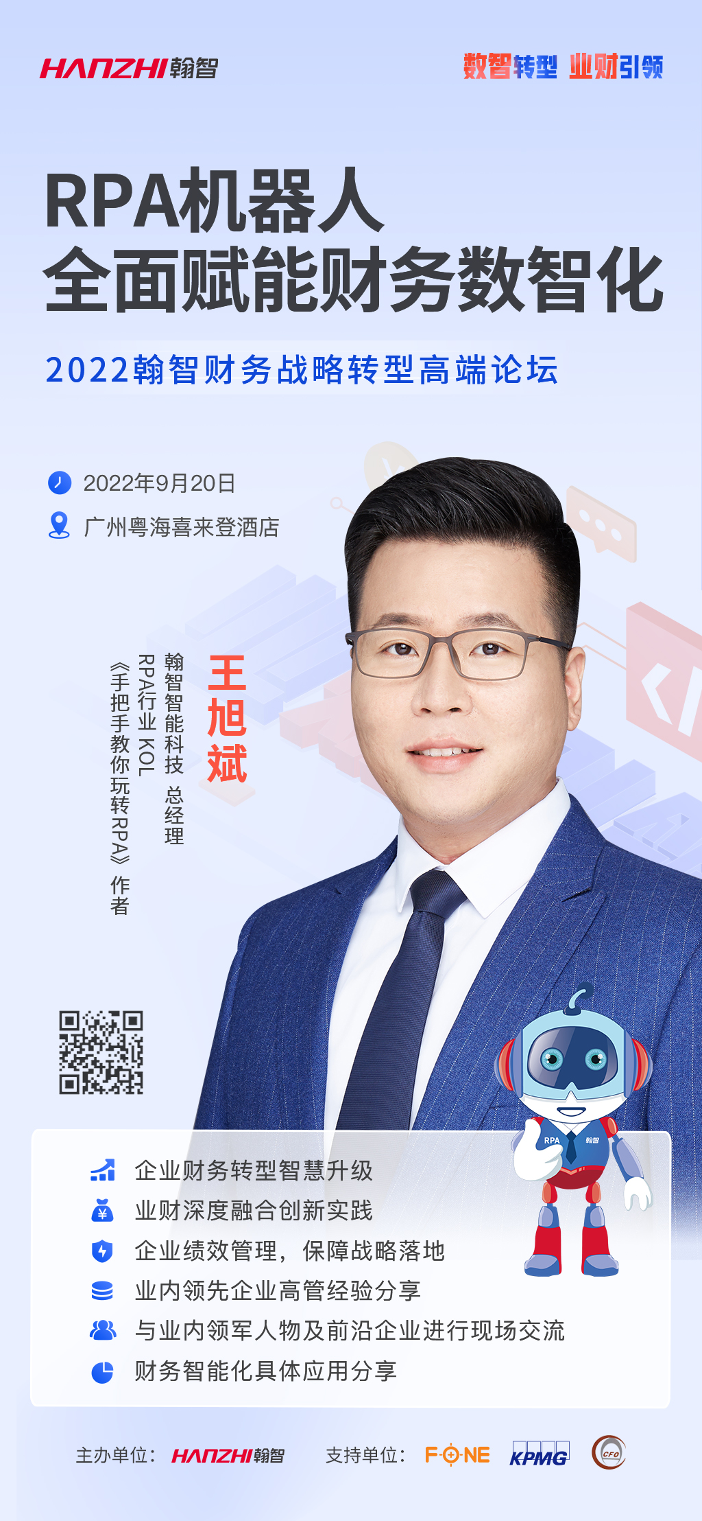 首页 / 近期活动 / RPA机器人全面赋能财务数智化 | 翰智智能科技总经理、RPA行业KOL王旭斌与您相约“2022年翰智财务战略转型高端论坛” RPA机器人全面赋能财务数智化 | 翰智智能科技总经理、RPA行业KOL王旭斌与您相约“2022年翰智财务战略转型高端论坛” 发布时间:2022-09-15 点击量:3790 发布者:admin