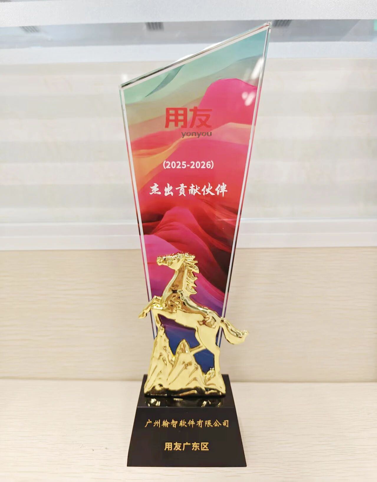 会上,翰智集团荣获用友2025-2026年“杰出贡献伙伴奖”,这次获奖充分肯定了翰智在业务能力和生态建设中的优异表现,助力数字化信息产业发展。