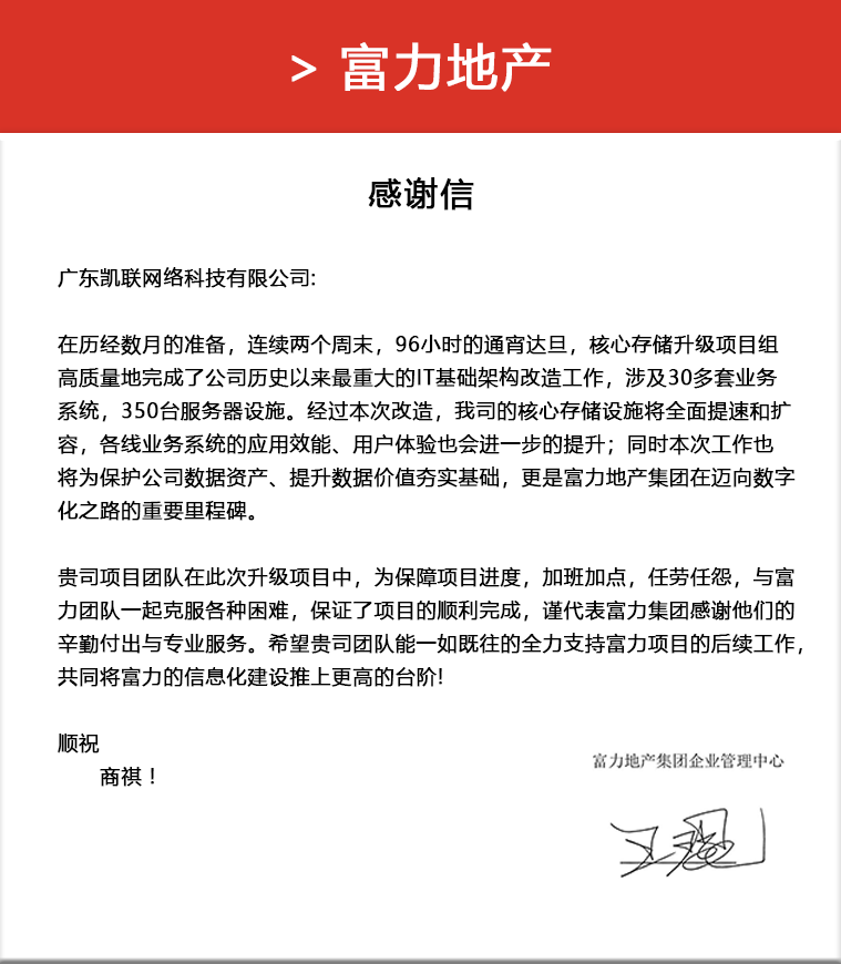 经历数月的准备,连续两个周末,96小时的通宵达旦,涉及30多套业务系统,350台服务器的改造项目,凯联实施小组在工期紧急的情况下加班加点,任劳任怨,克服各种困难,保证了项目的顺利完成。